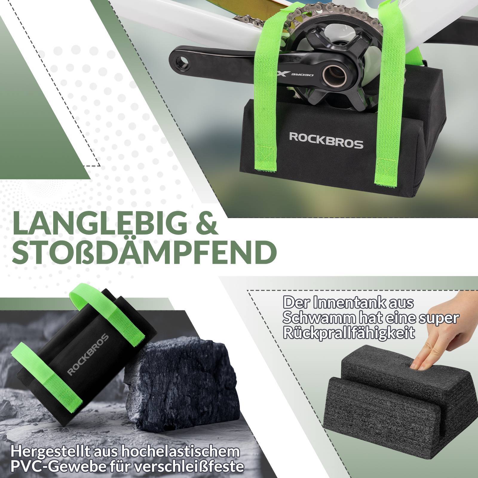 Schütze deine Fahrrad Kettenradgarnitur vor Schäden mit dem ROCKBROS Fahrrad Kettenradgarnitur Schutzpolster. Das Universal Zubehör ist in Schwarz und Grün erhältlich und verhindert effektiv Schäden an deiner Kettenradgarnitur. Schütze deine Investition und genieße eine längere Lebensdauer deines Fahrrads.