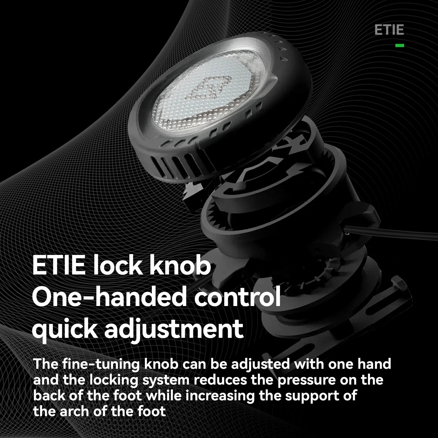 Mit dem präzisen Mikro-Drehverschluss lässt sich die Passform mit nur einer Hand feinjustieren. Das System reduziert den Druck auf den Fußrücken und bietet gleichzeitig mehr Unterstützung im Fußgewölbe.