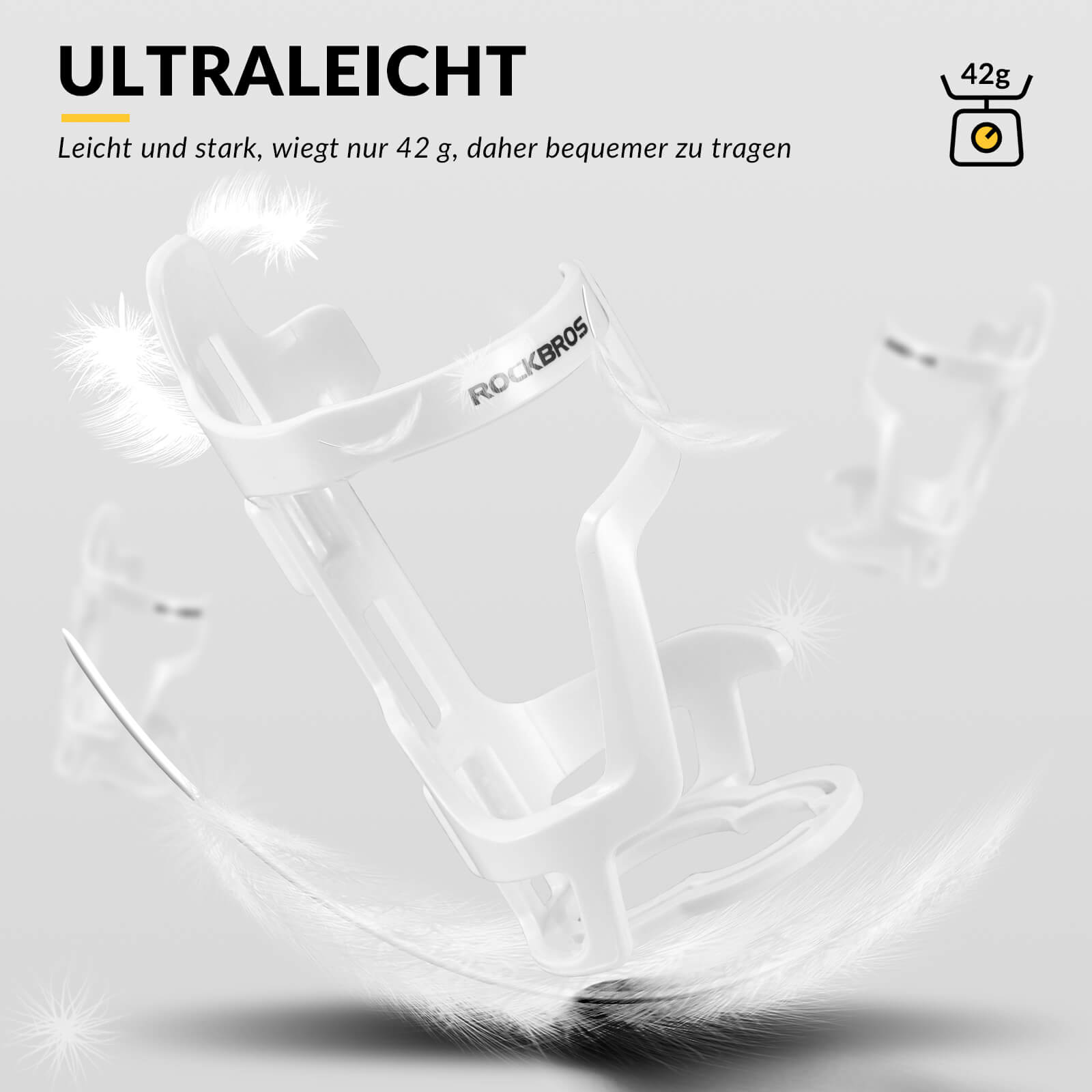 Ultraleicht und bequem: Der ROCKBROS Wasserflaschenhalter wiegt nur 42 g und besteht aus einer hochwertigen Aluminiumlegierung. Durch sein geringes Gewicht ist er besonders angenehm zu tragen und beeinträchtigt das Fahrradgewicht nicht.